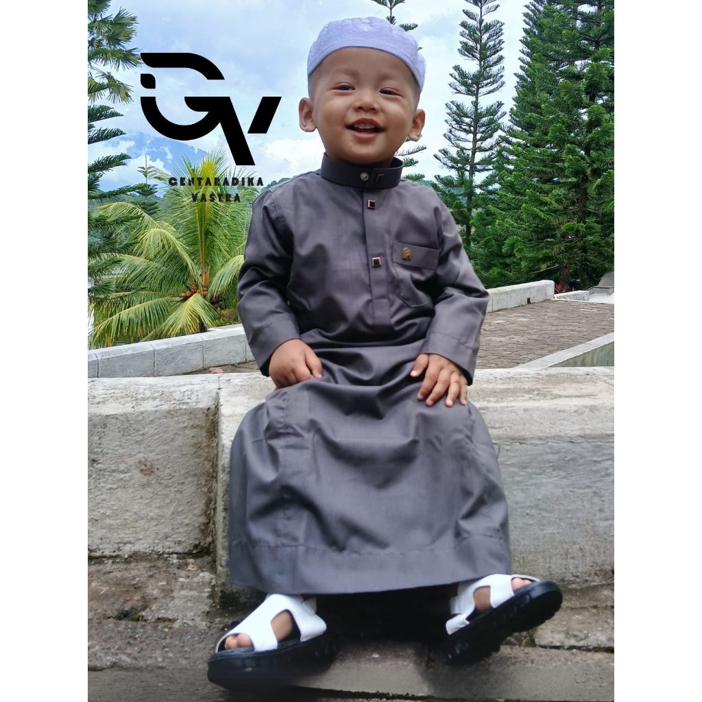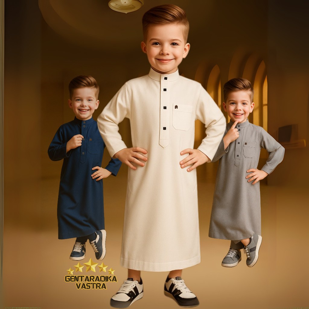 Jubah Gamis Anak Laki-Laki Usia 1-14 Tahun Model Saudi Arabia Katun Kerah Tegak