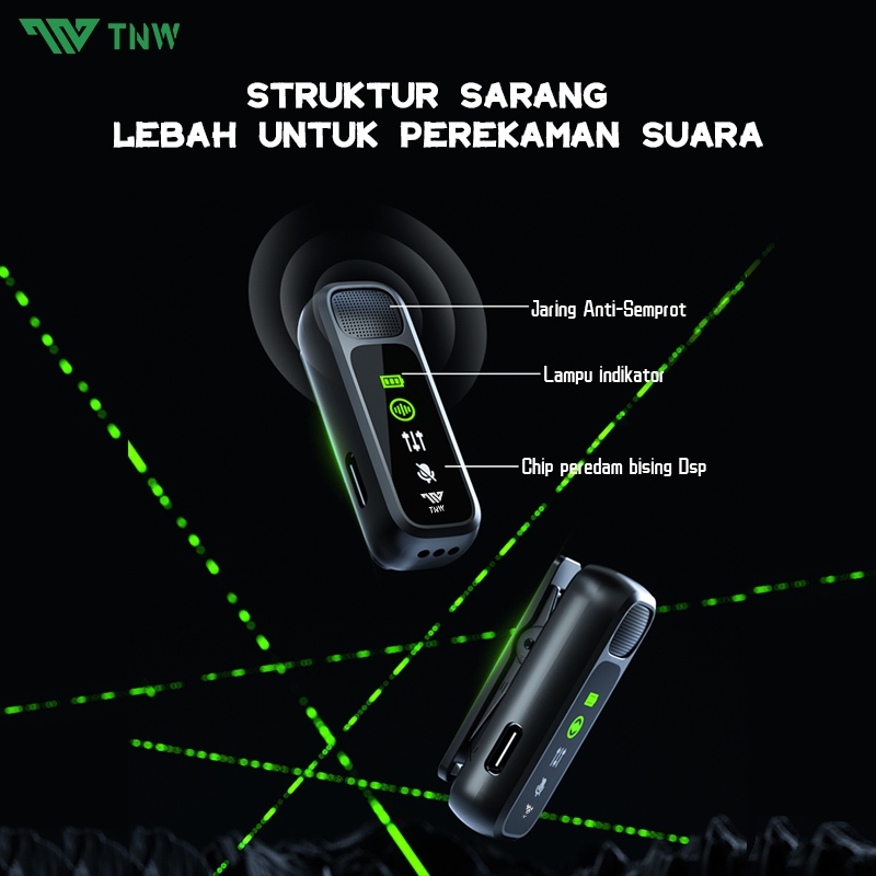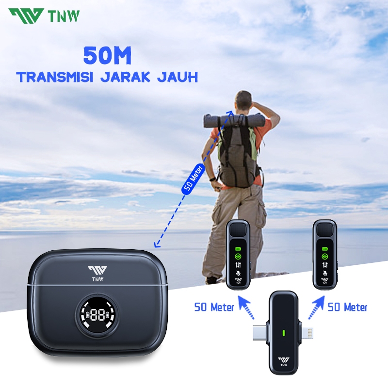 TNW A13 Wireless Microphone 2-In-1 Clip On Mic Wireless Dual Lavalier Mikrofon Iphone dan Charging Case Bluetooth Mikrofon Wireless Clip on untuk TikTok YouTube Facebook Live Stream