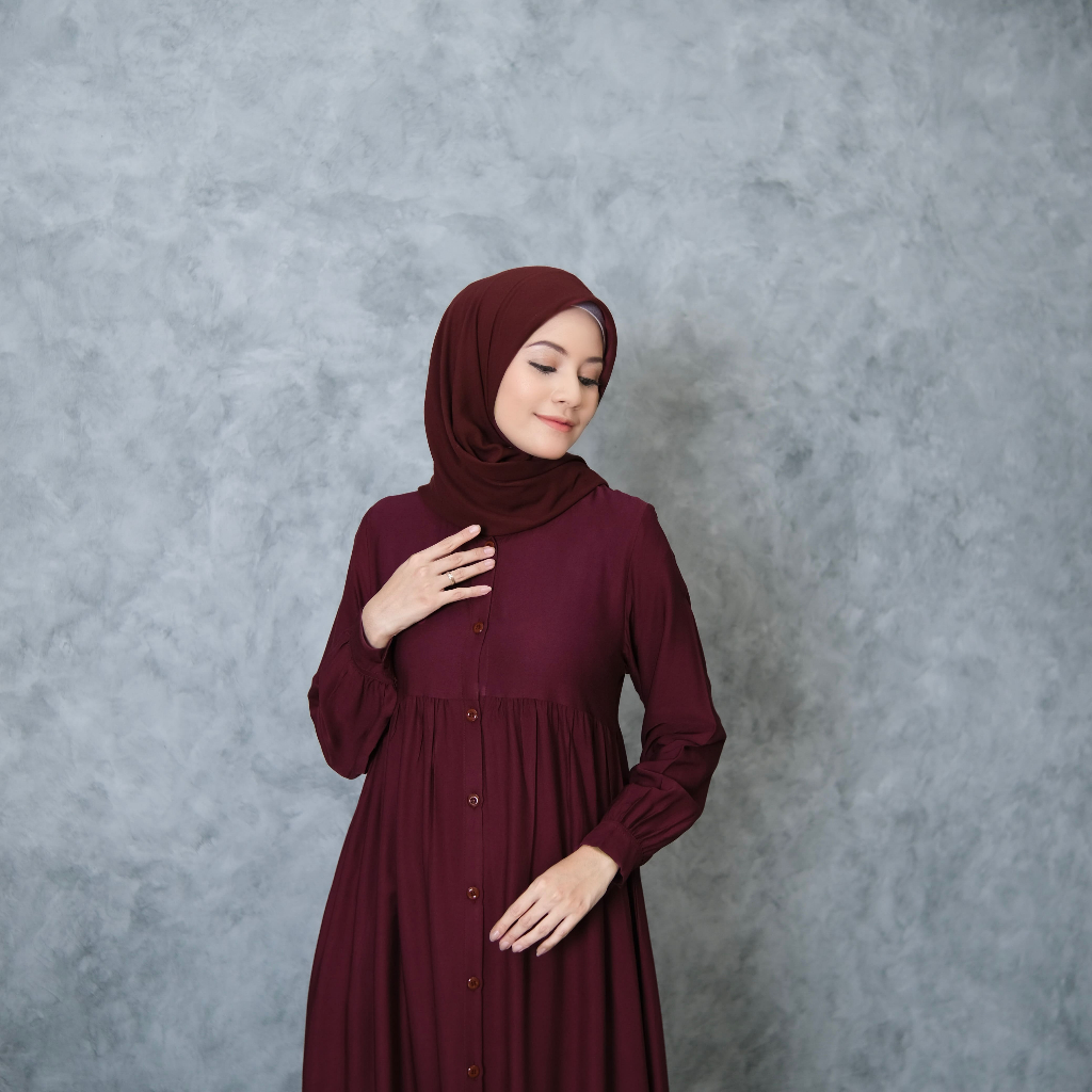 Gamis Full Kancing Rayon Twill Gamis Polos Premium Muslim Wanita Gamis Lengan Kancing