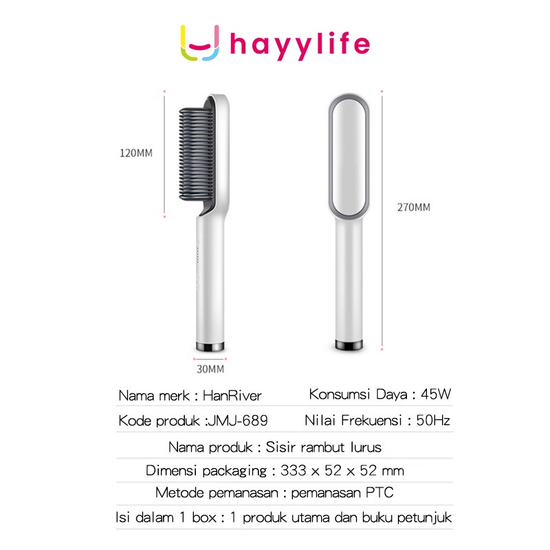 HAYYLIFE Catok Sisir Pelurus Rambut Hair Straightener Curler 2 in 1 catokan sisir listrik HL-BBB531
