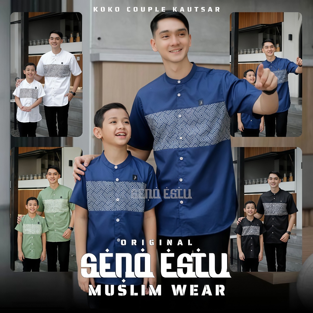 SENO ESTU- Baju Koko Couple Ayah & Anak Laki-laki Motif embos Umar Mahogani & Burgundy Katun Toyobo Import Original Lebaran 2026 Size M L XL XXL