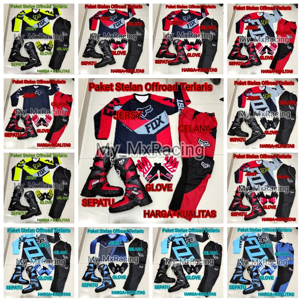 GRATIS CETAK NAMA & NOMOR sepatu cross trail satu sett perlengkapan offroad jersey sett celana sarung tangan glove bots trabas adventure
