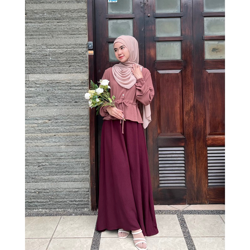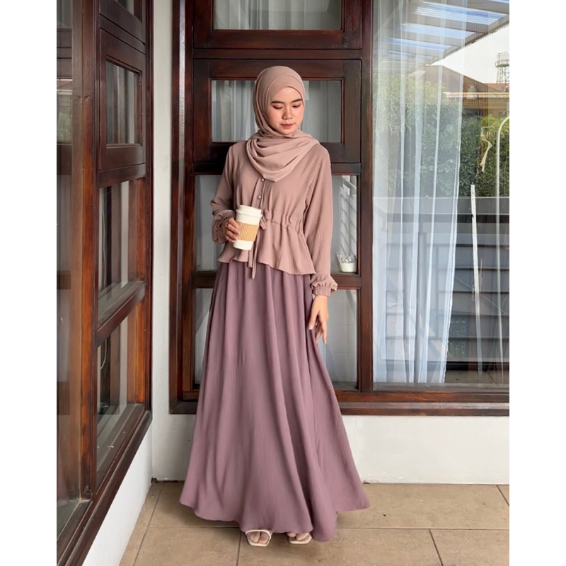 Rosella Dress Bahan Premium Crinkle Gamis Wanita Remaja Simpel Kekinian