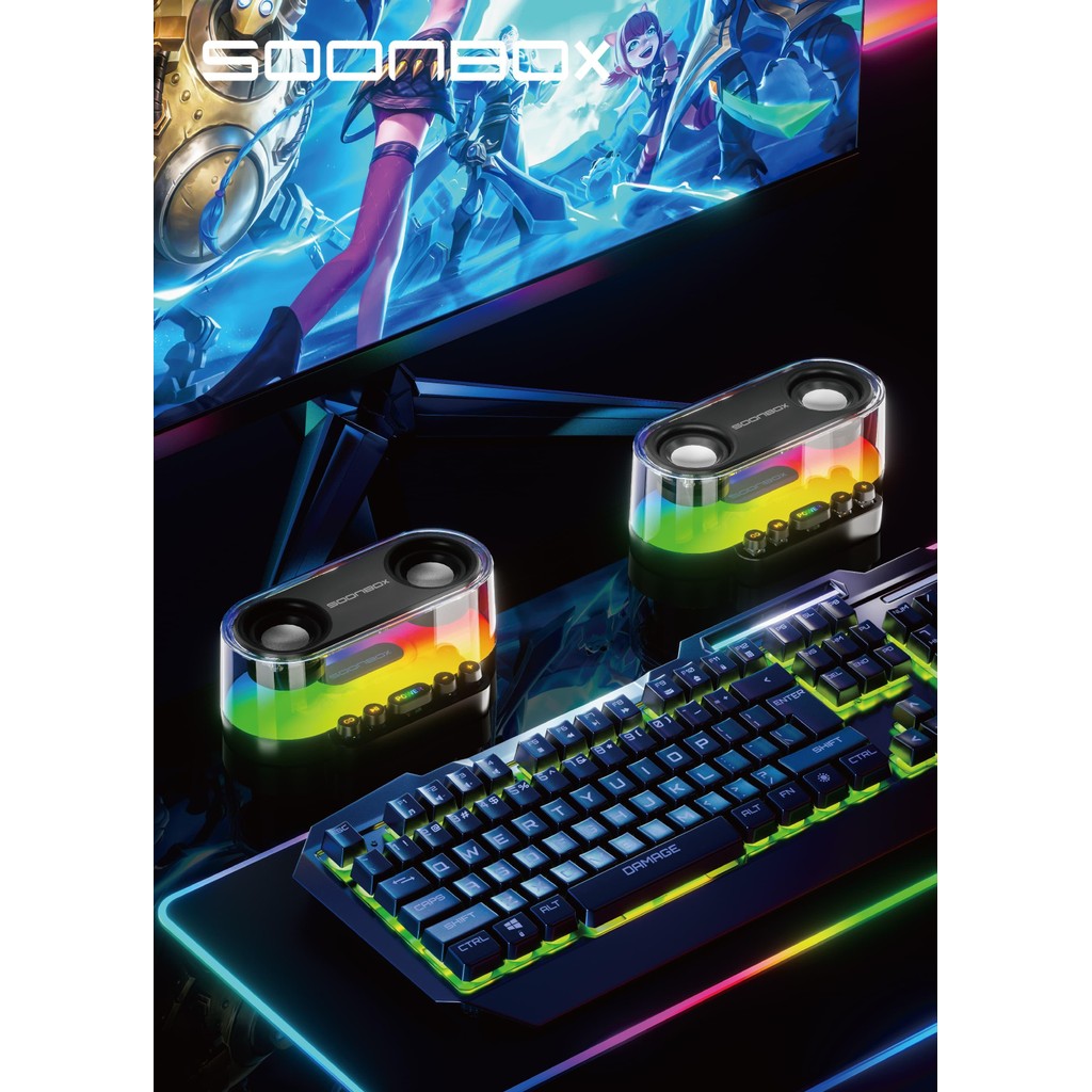 SOONBOX S302 Speaker Bluetooth 5.3 Portabel 20W Suara 360° LED Light Bass Sound + Mechanical Button