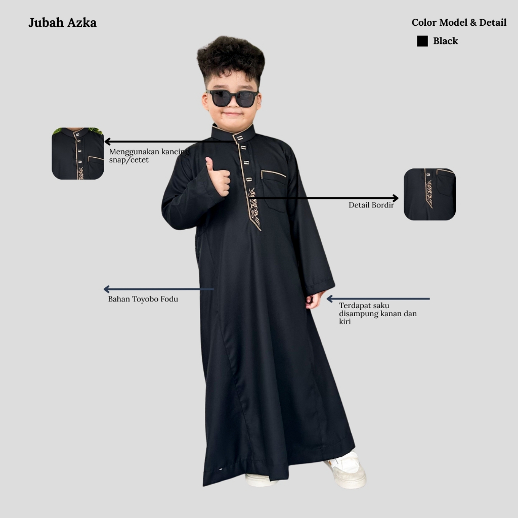 Gamis Azka Jubah Saudi Basic Thobe Anak Remaja Kancing Snap Lengan Panjang Berkualitas