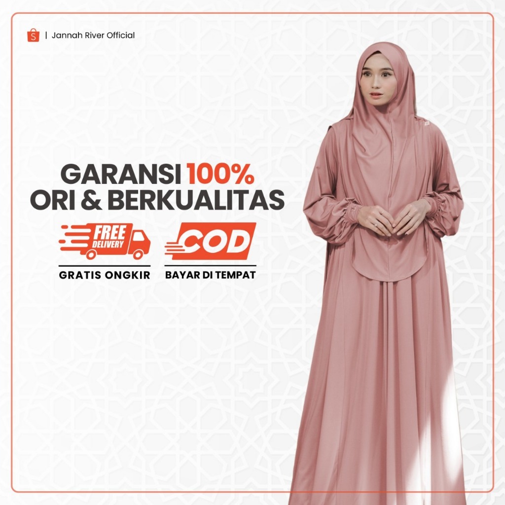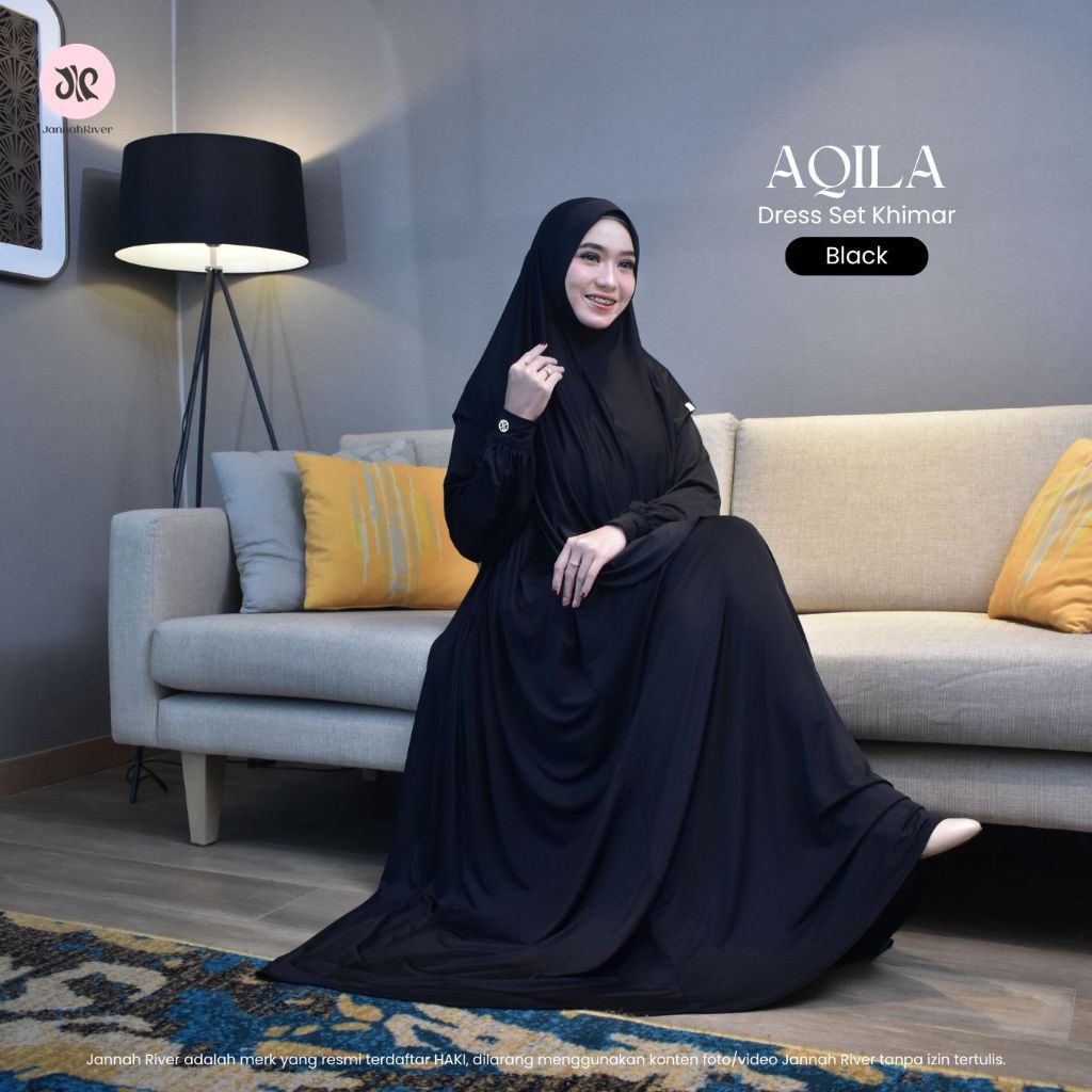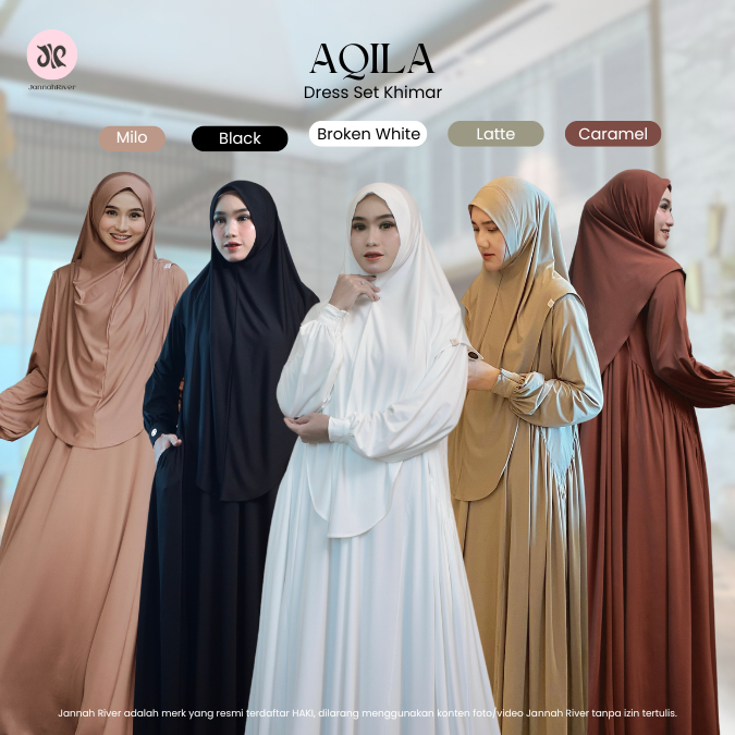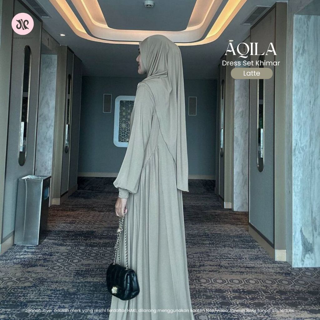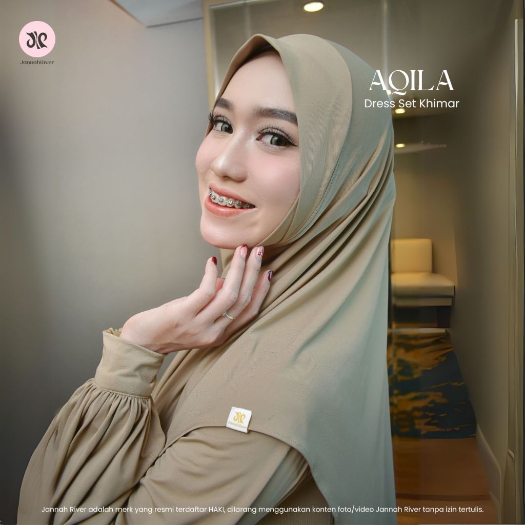 Jannah River Aqila Dress Set Khimar Dagu Bahan Jersey Korea Premium Terbaru Mewah Elegan Wudhufriendly Syari Gamis Lebaran Umroh & Haji