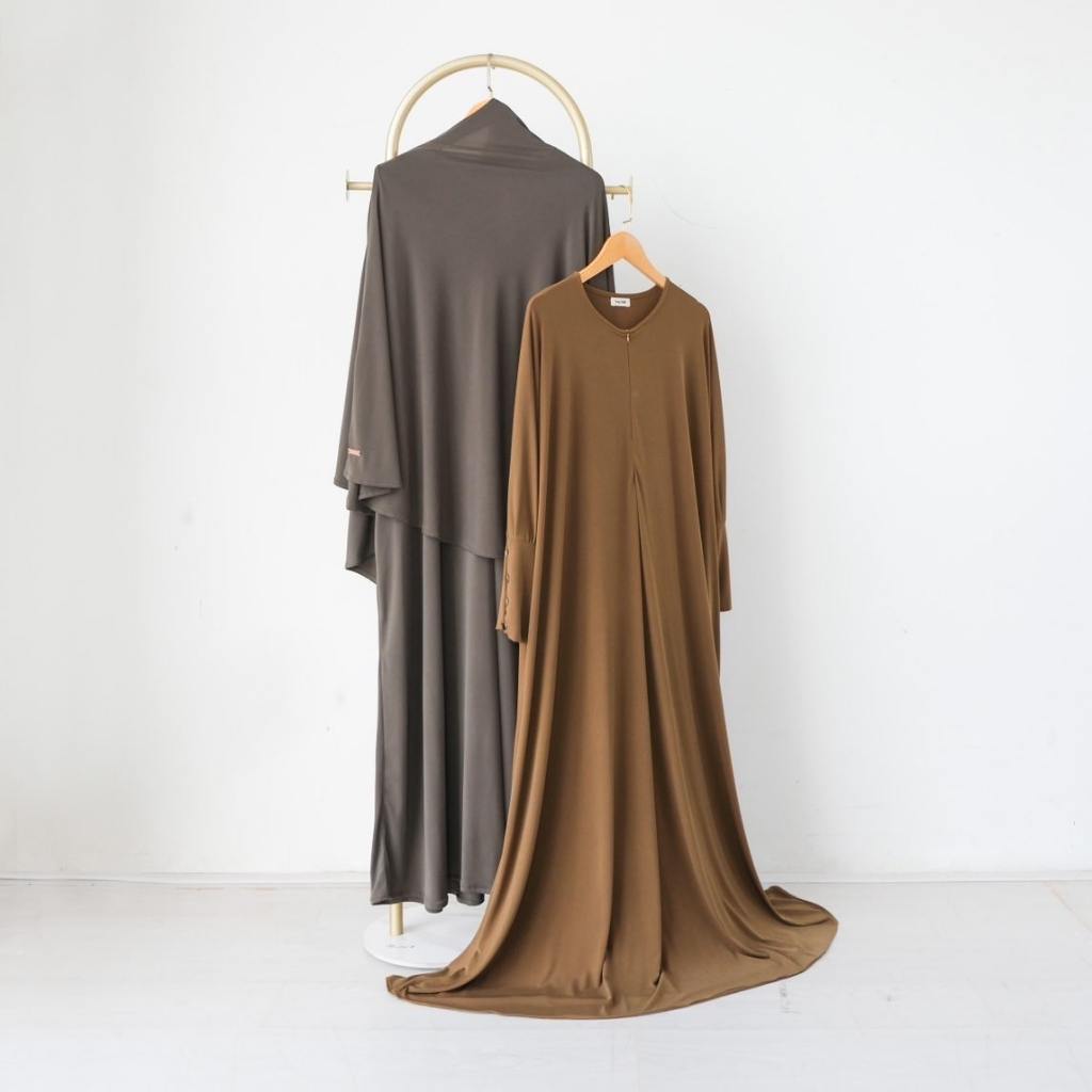 Hafisa Abaya Set (Abaya Gamis Set Khimar Haji dan Umrah Bahan Jersey)