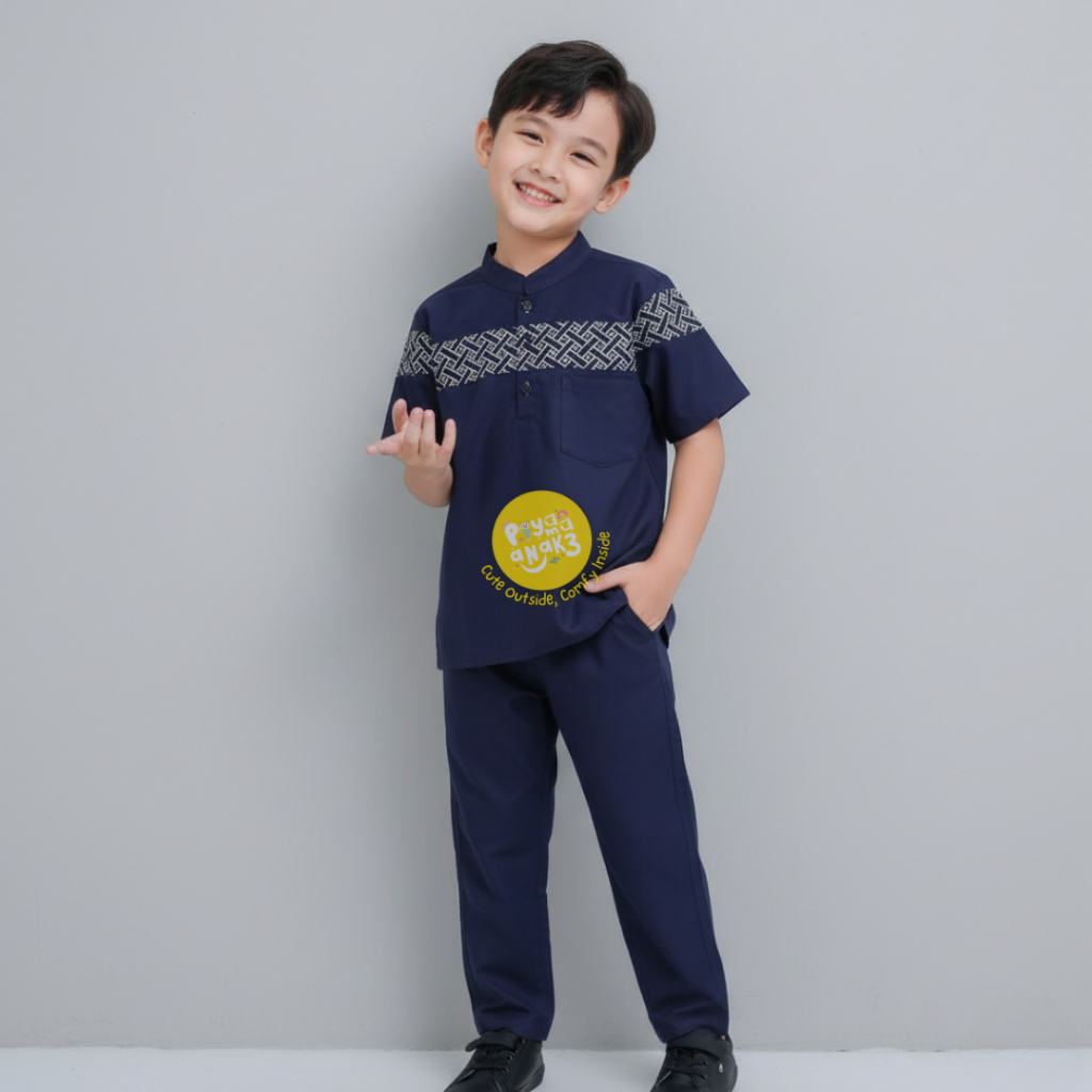 PAKET 3 SETELAN KOKO CAMPUR KURTA ANAK BATIK DADA KANCING LIS GARIS 1-10 TAHUN 60RIBU DAPAT 3 SET