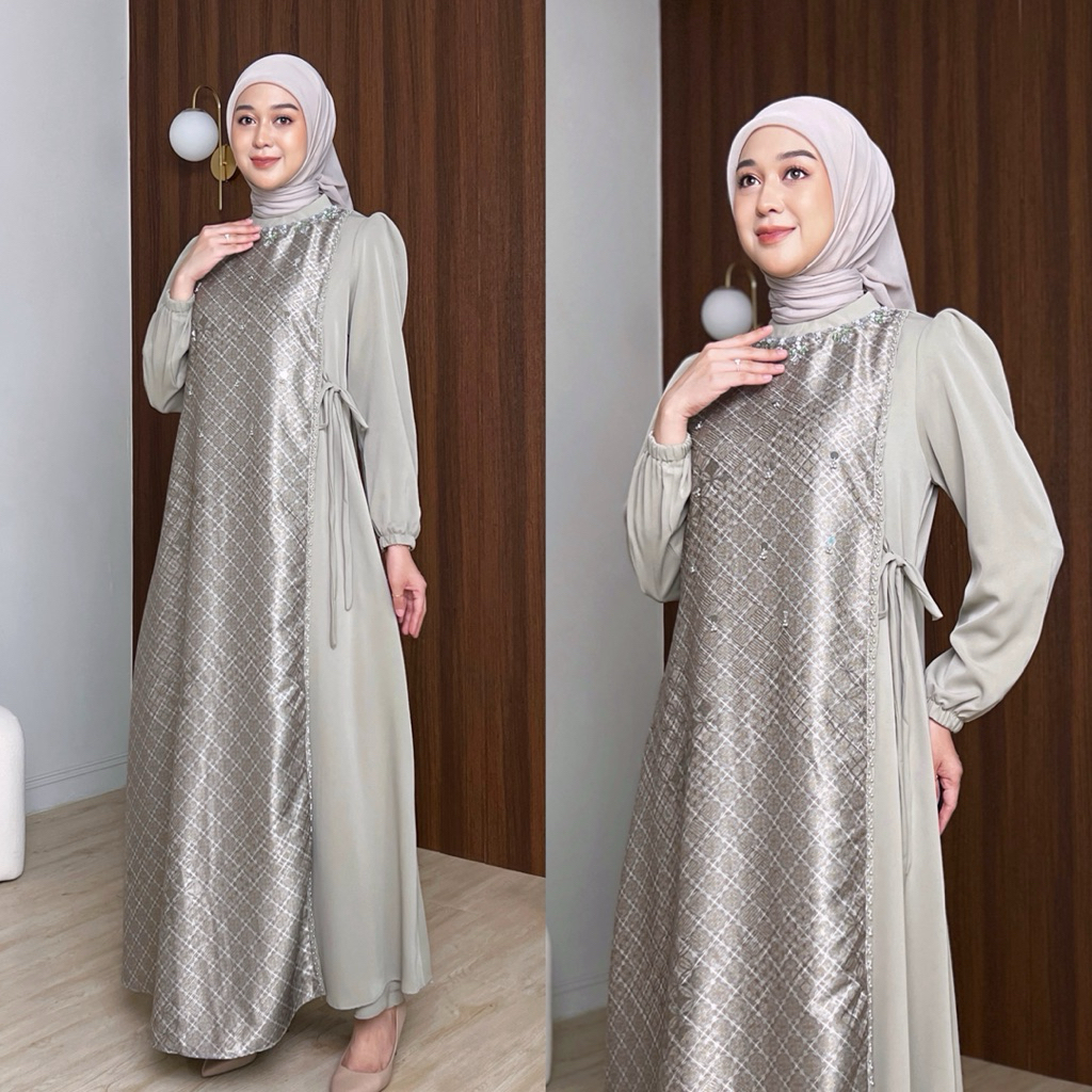 SERUNI DRESS GAMIS WANITA MUSLIMAH REMAJA DEWASA Ibu Ibu Payet Kondangan Motif Kombinasi Polos