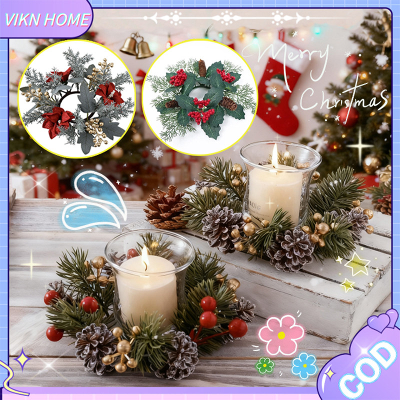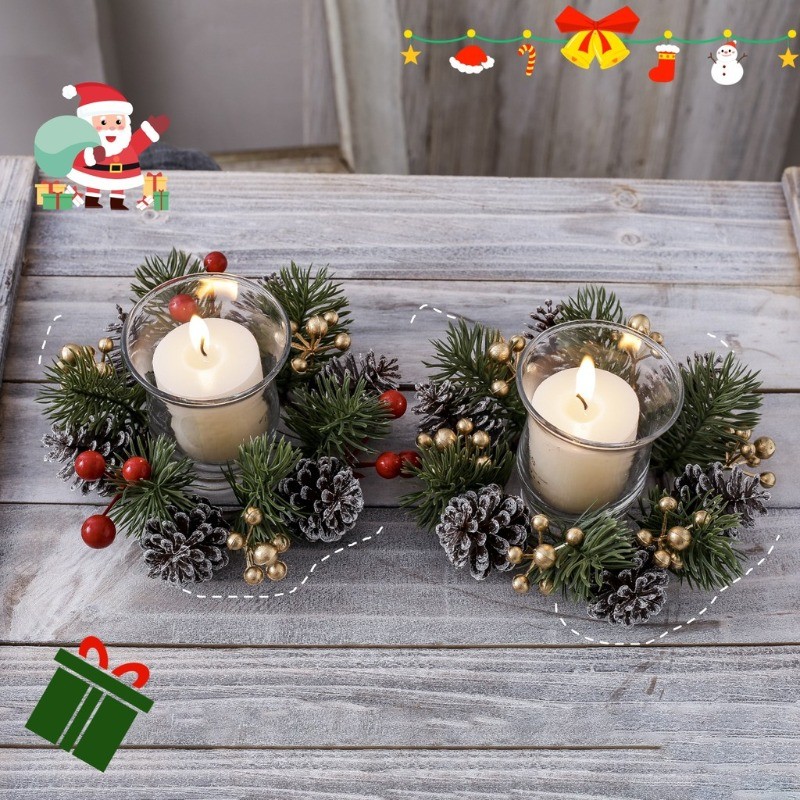Karangan Bunga Lilin Natal Christmas Candle Hiasan Dekorasi Karangan Bunga Natal Hiasan Meja Dekorasi Penahan Lilin