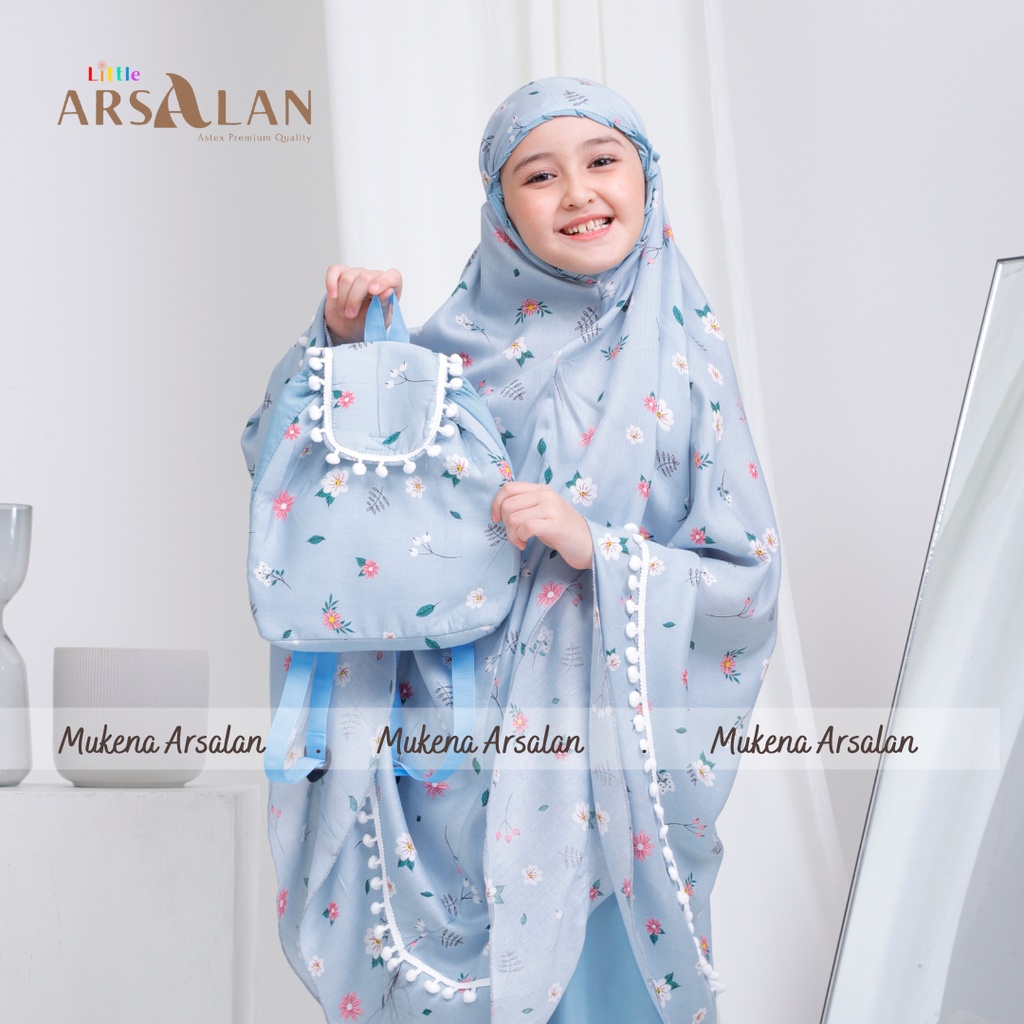 Mukena Anak Pompom Tas Ransel | Mukena Rayon kombinasi Mikro Anak SD Tanggung | Mukena Arsalan