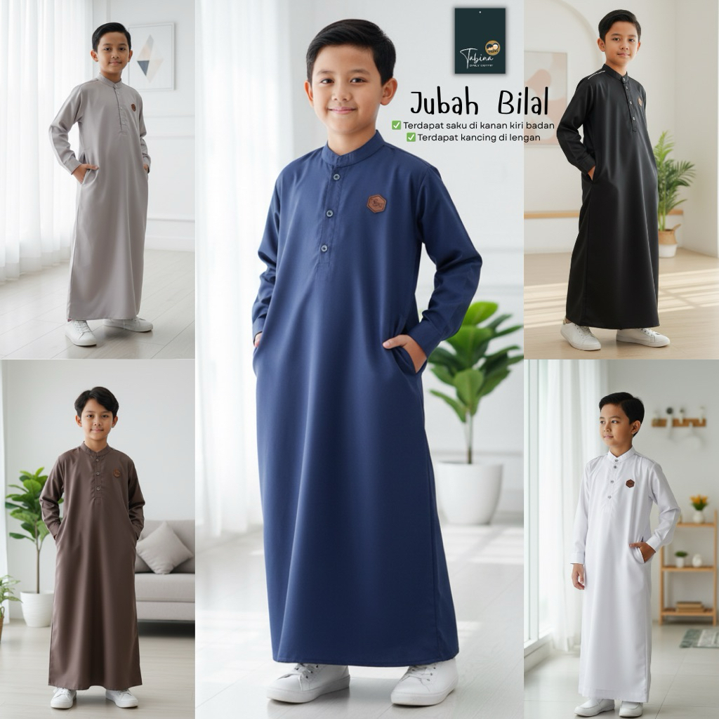 Jubah Gamis Anak, Remaja dan Dewasa Laki Laki Lengan Panjang seri Bilal usia 2 hingga XXL