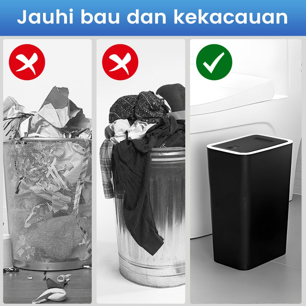 SAKULA Tong Sampah Plastik Tertutup Minimalis Tempat Sampah Dengan Klik Otomatis Kotak Sampah