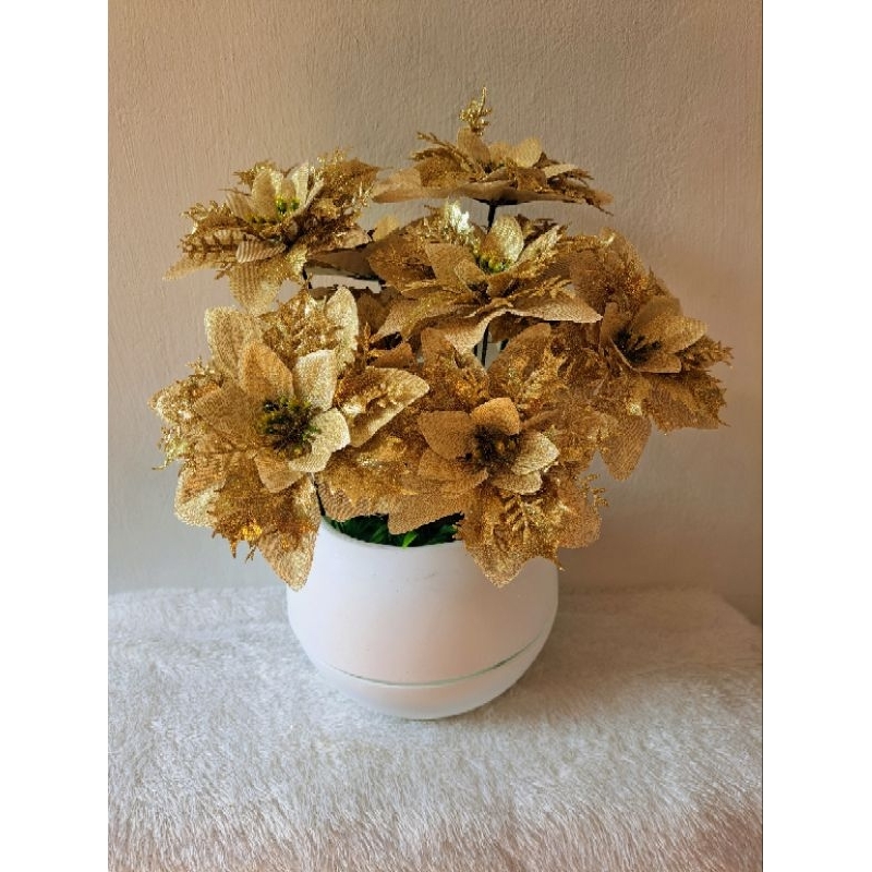 rangkaian bunga natal kastuba gliter mewah +t bola besar /bunga meja