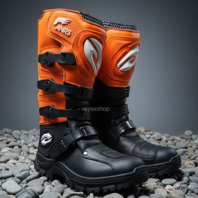 SEPATU KULIT ASLI WARNA ORANGE HITAM SEPATU TRAIL CROSS KULIT OREN HITAM ANRS ORIGINAL