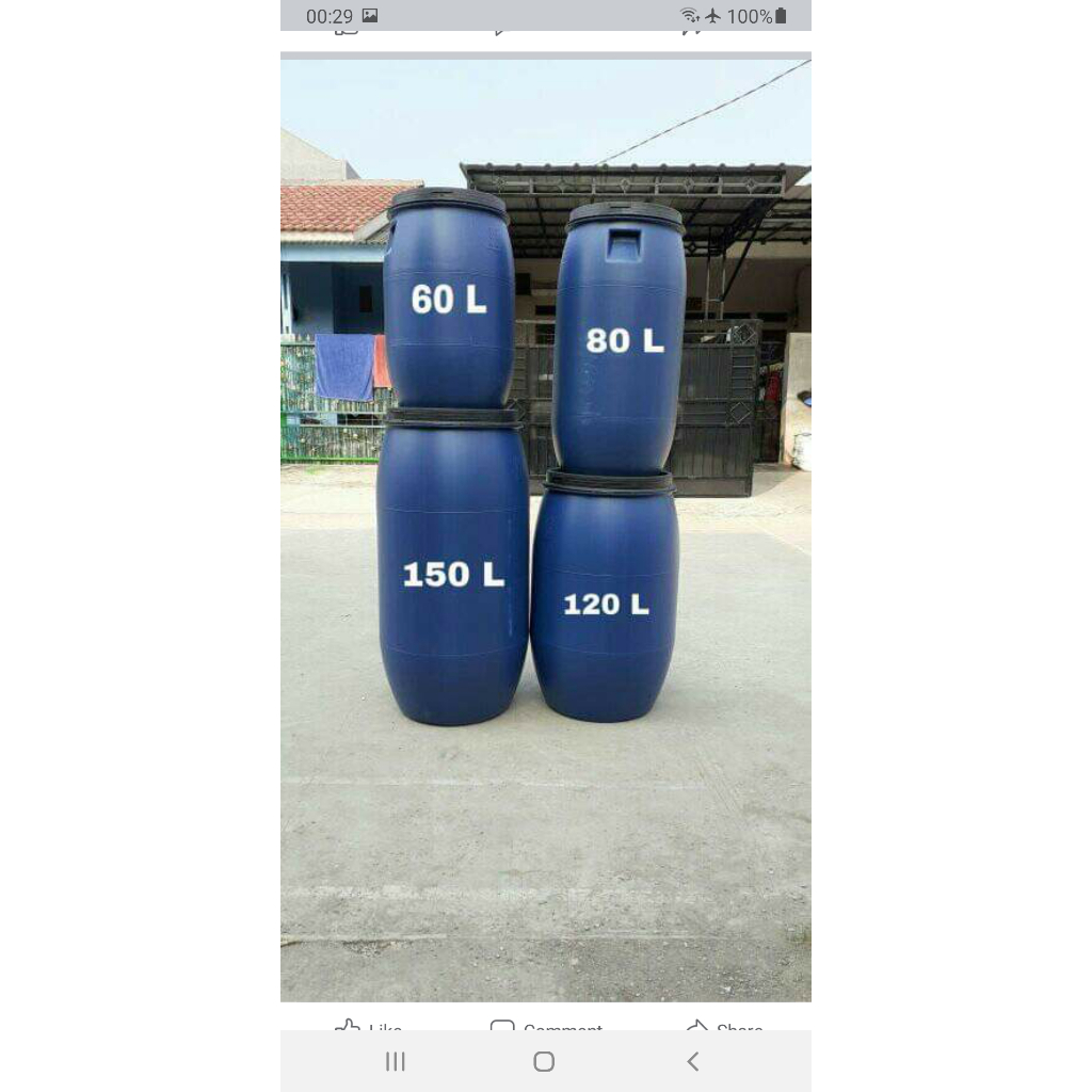60L Tempat Sampah Biru/ Tong Air Biru SUPER TEBAL & KUAT 60L termasuk Tutup
