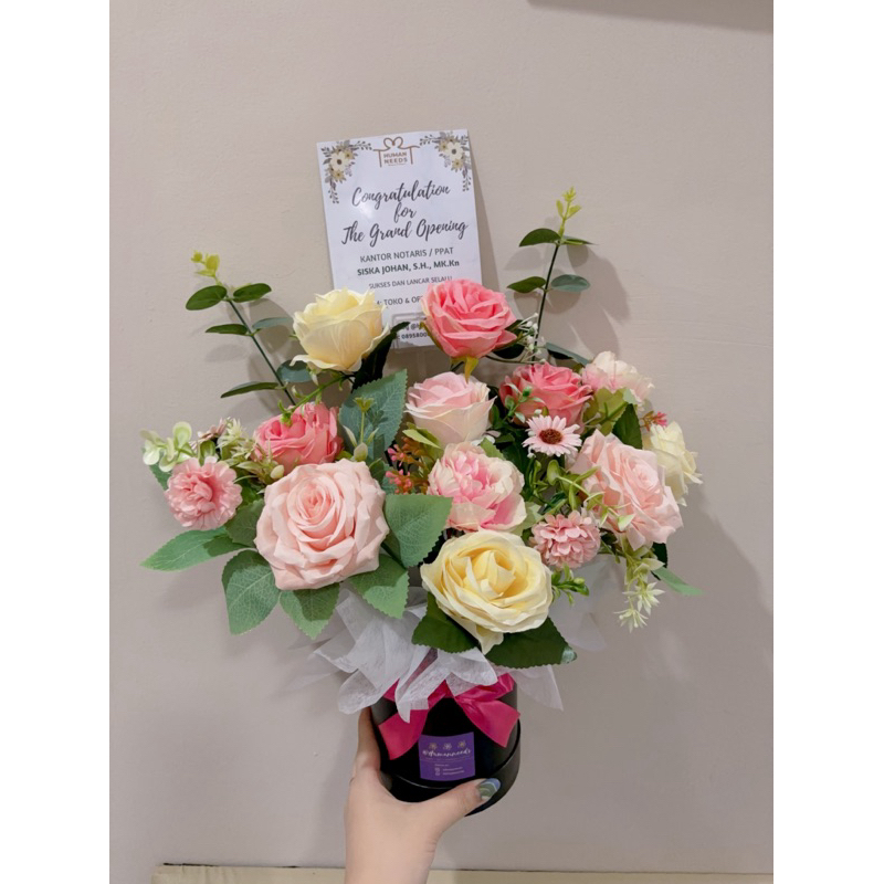 Bloom Box Floowers Ellegant | Karangan Bunga Buket Cocok untuk kelulusan / Grand Opening / Hampers Natal mewah