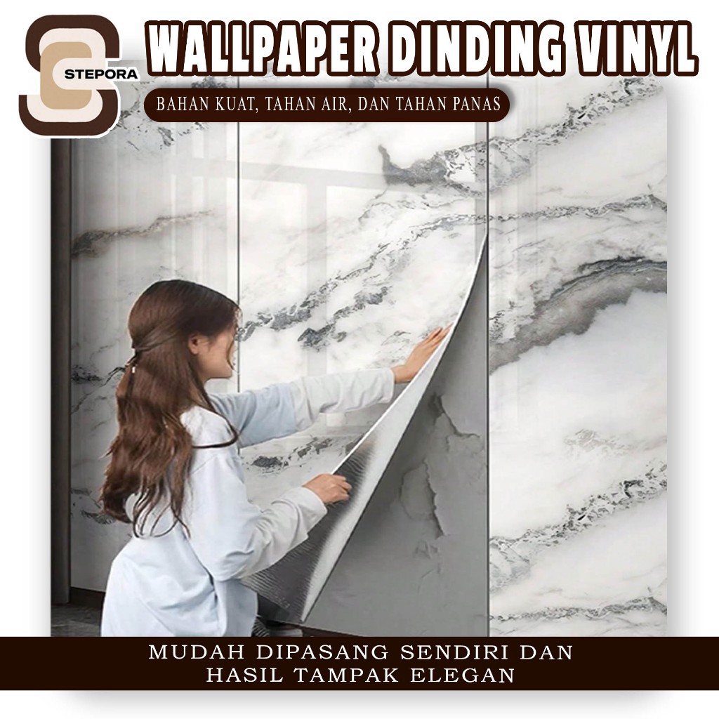 Wallpaper Dinding Vinyl Roll Ukuran 120x280 CM Motif Marmer Asli Yang Elegan dan Kekinian