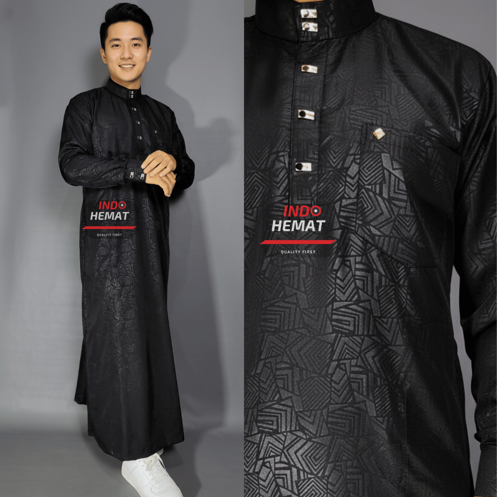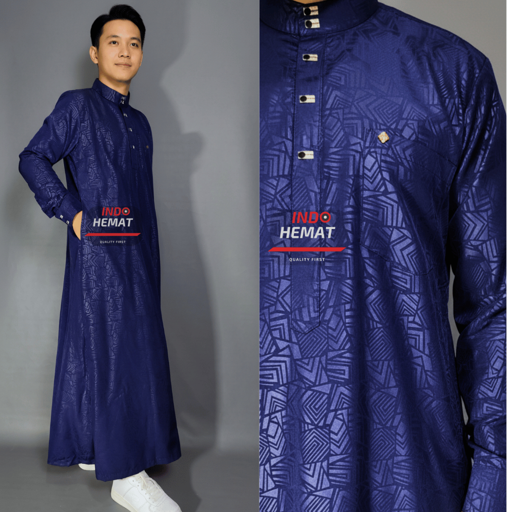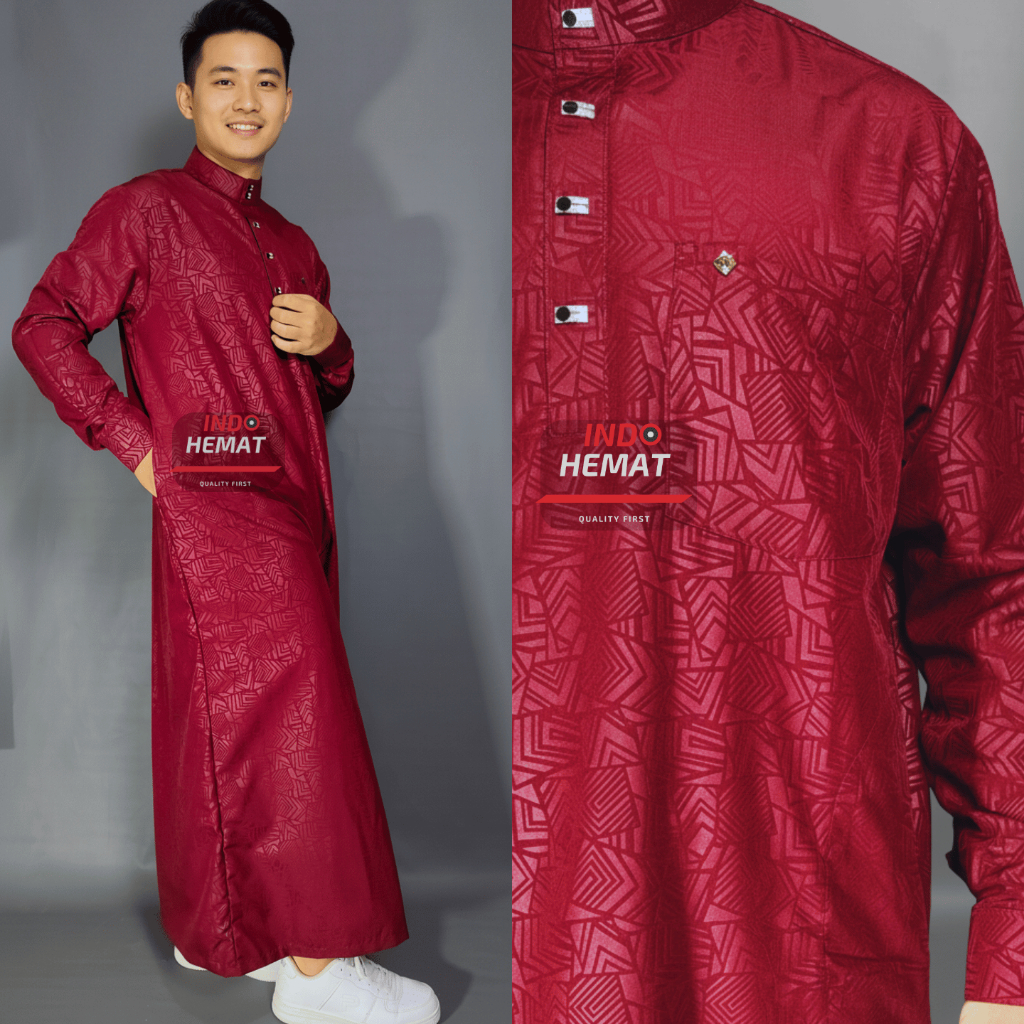 Jubah Gamis Pria Dewasa Lengan Panjang Embos Katun Premium Manset Kancing Import