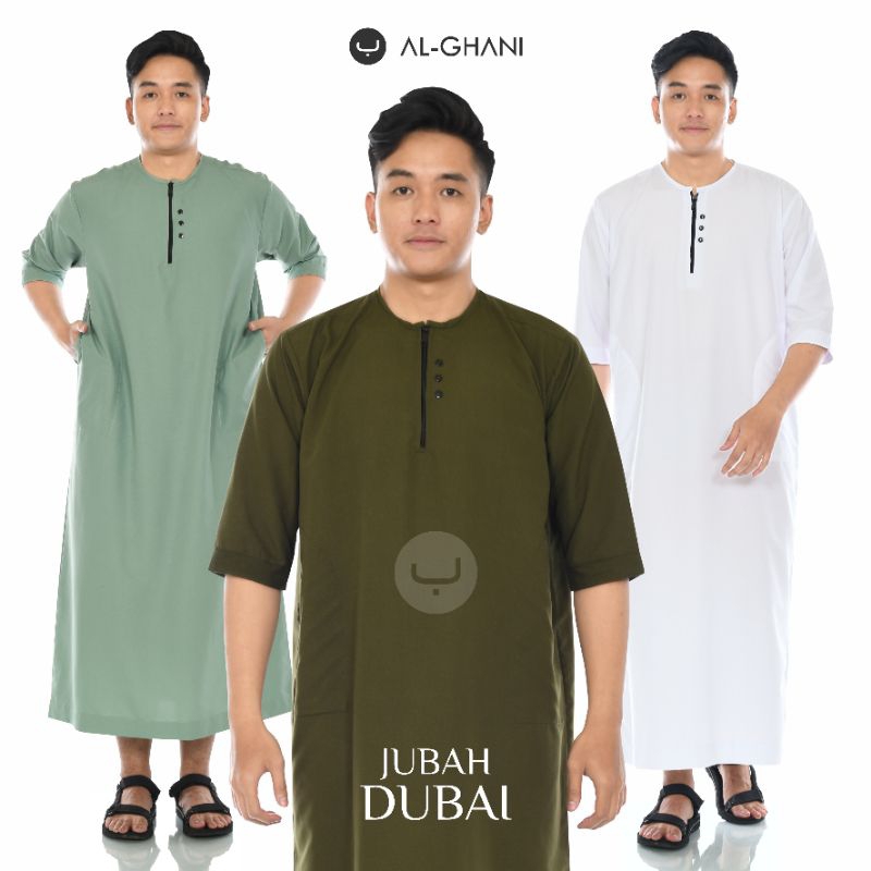 jubah Dubai, jubah gamis pria model terbaru tangan 3/4 bahan katun soft untuk dewasa & remaja