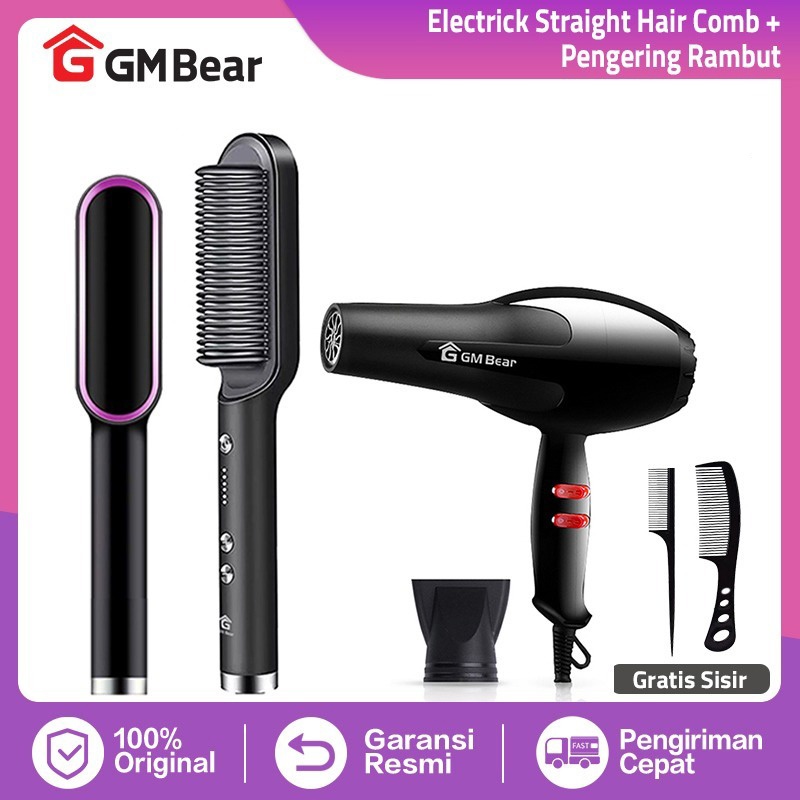 GM Bear Bundle Hemat Catokan Sisir Rambut 2 in 1 1558 + Hair Dryer 1115