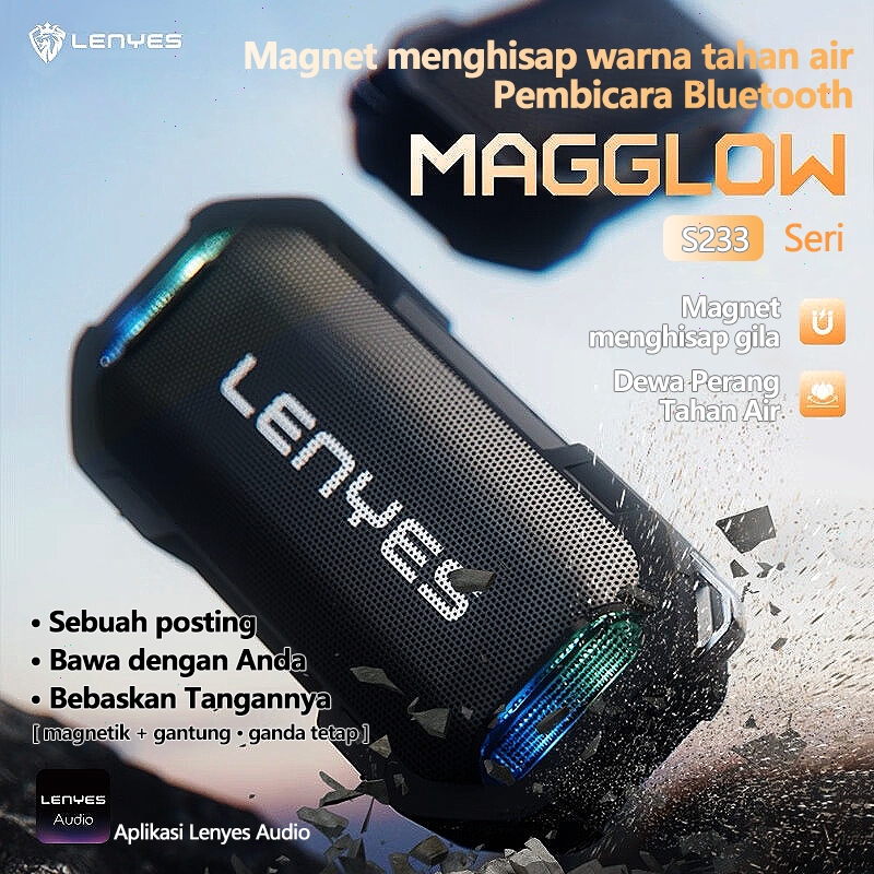 LENYES S233 MagGlow Mini Bluetooth 5.3 Wireless Speaker Extra Bass RGB Light DSP Waterproof IPX7 TWS