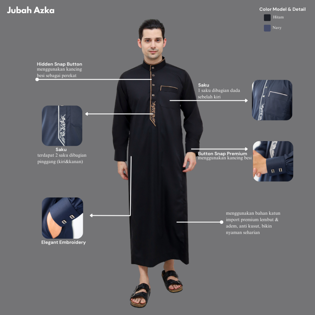 Gamis Azka Gamis Saudi Basic Thobe Pria Couple Kancing Snap Lengan Panjang Berkualitas