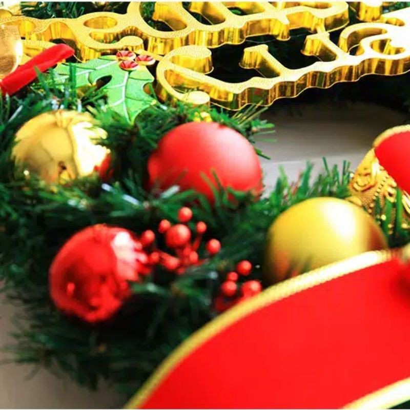 Karangan Bunga Natal Merry Christmas Gantung Depan Pintu / Christmas Wreath Artificial
