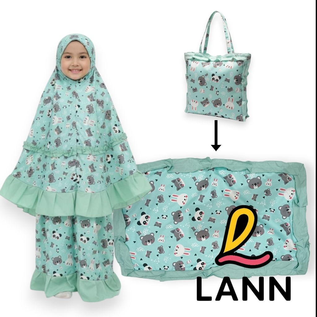 Mukena anak 3in1 motif karakter 3-9 tahun tas ransel bisa jadi sejadah bahan katun premium