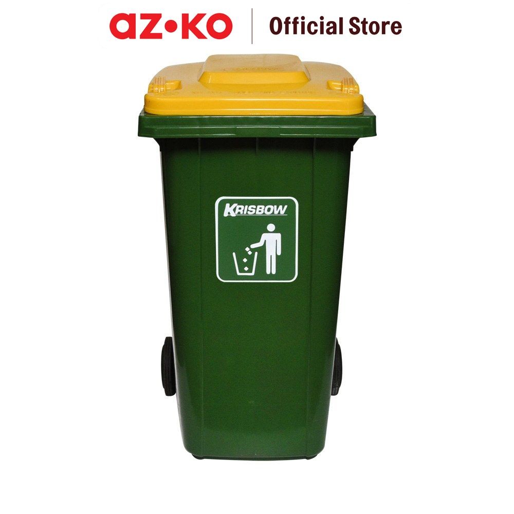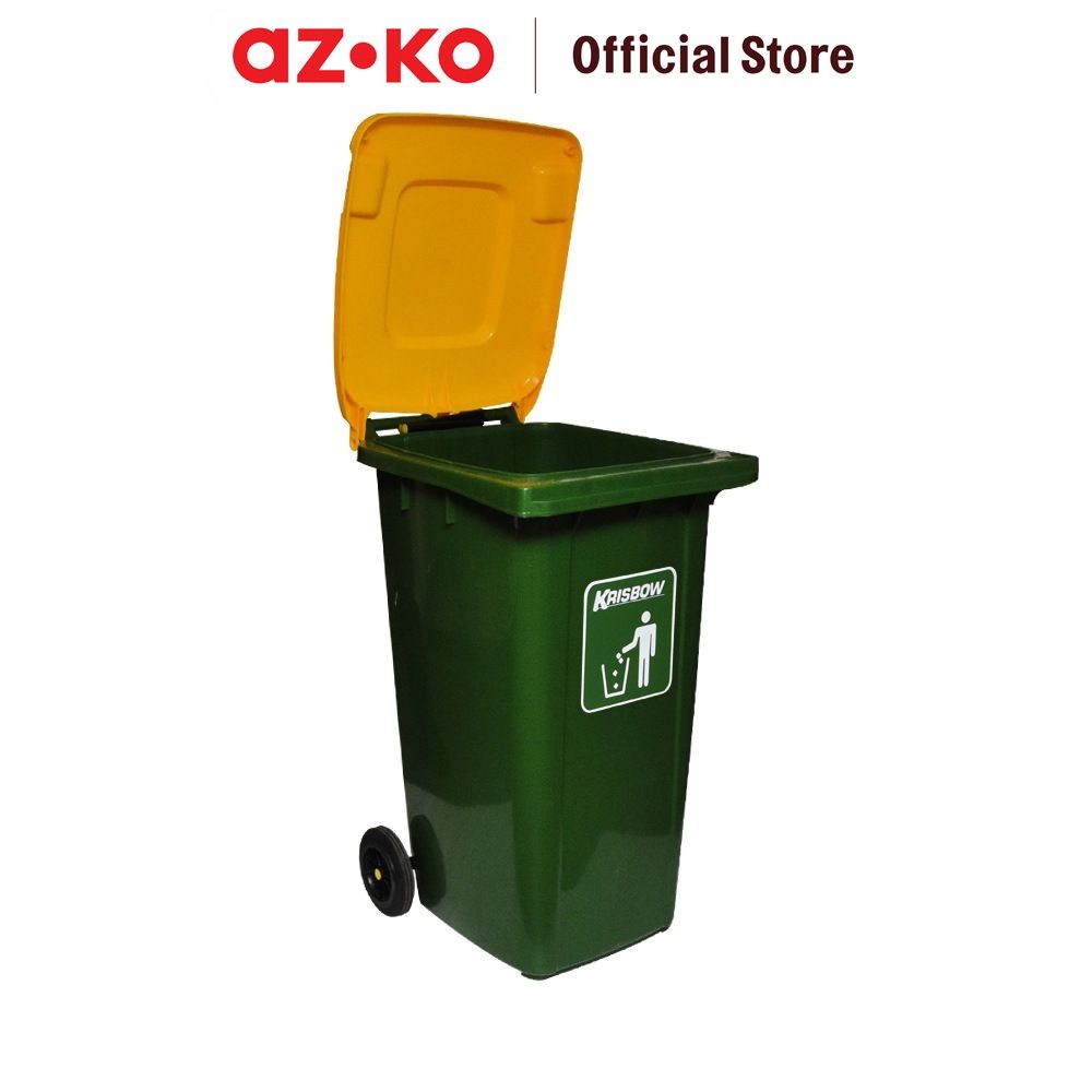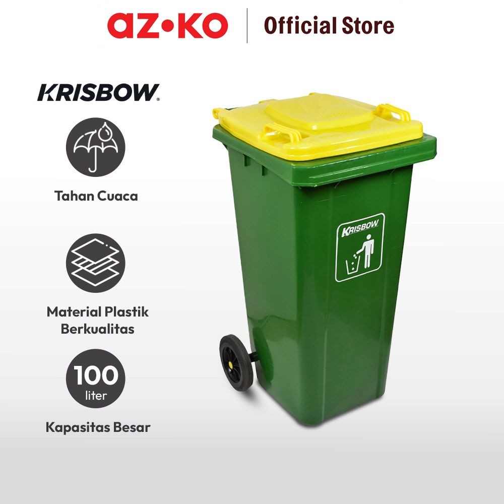 AZKO Krisbow 100 ltr Tempat Sampah Dengan Tutup - Hijau/Kuning Tong Sampah Dengan Tutup Wadah Pemban Alat Kebersiha