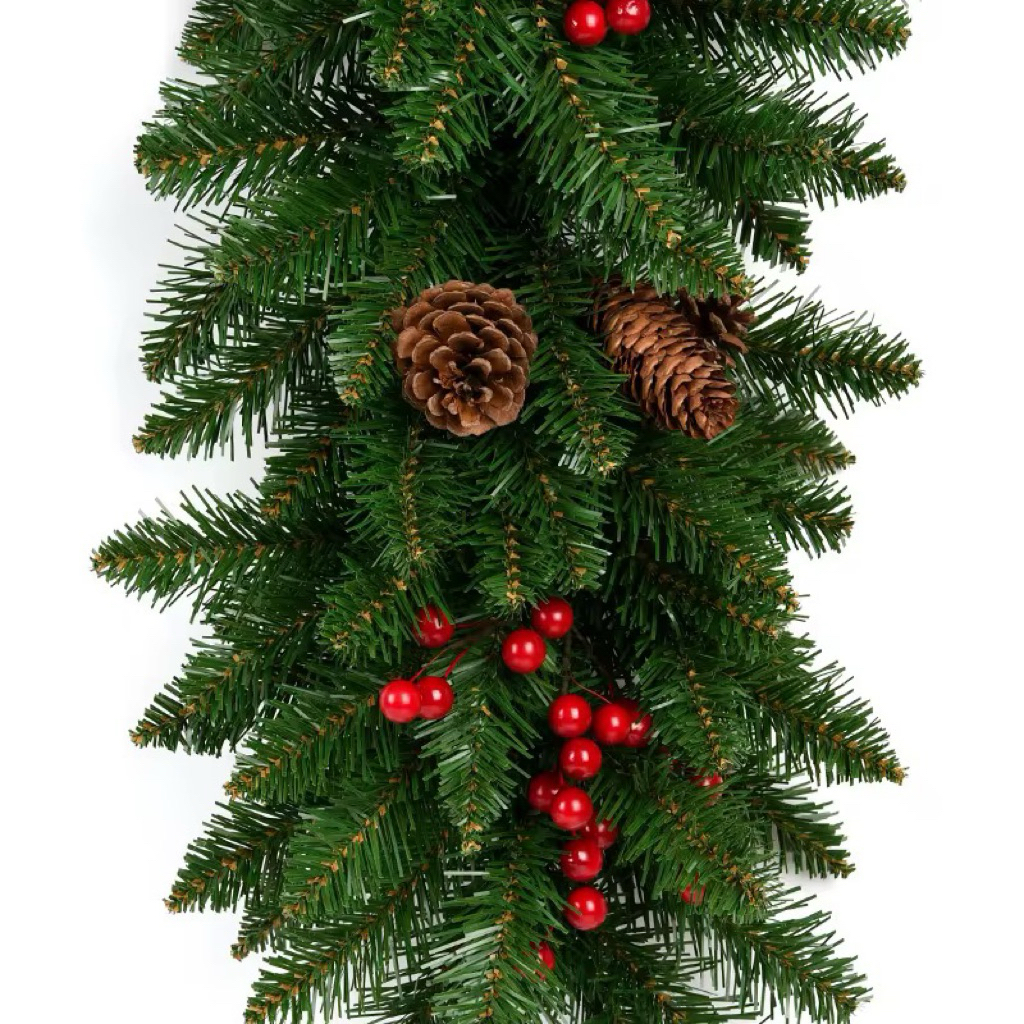Karangan Bunga Natal Garland Panjang Dekorasi Natal Karangan Bunga Natal Panjang Garland Hijau los Bahan PVC Ukuran 2,7 Meter