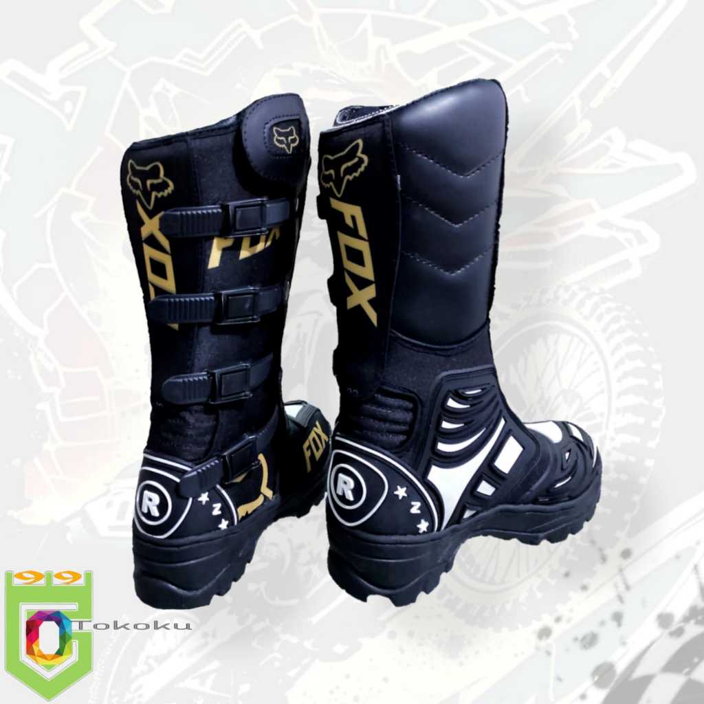 Sepatu motor cross trail adventure motif warna hitam