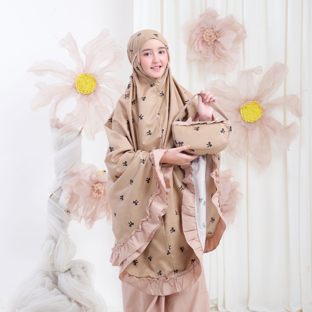 Mukena Anak Usia 6-12Th Katun Motif Remple Premium Kombinasi Resleting Dagu 2in1