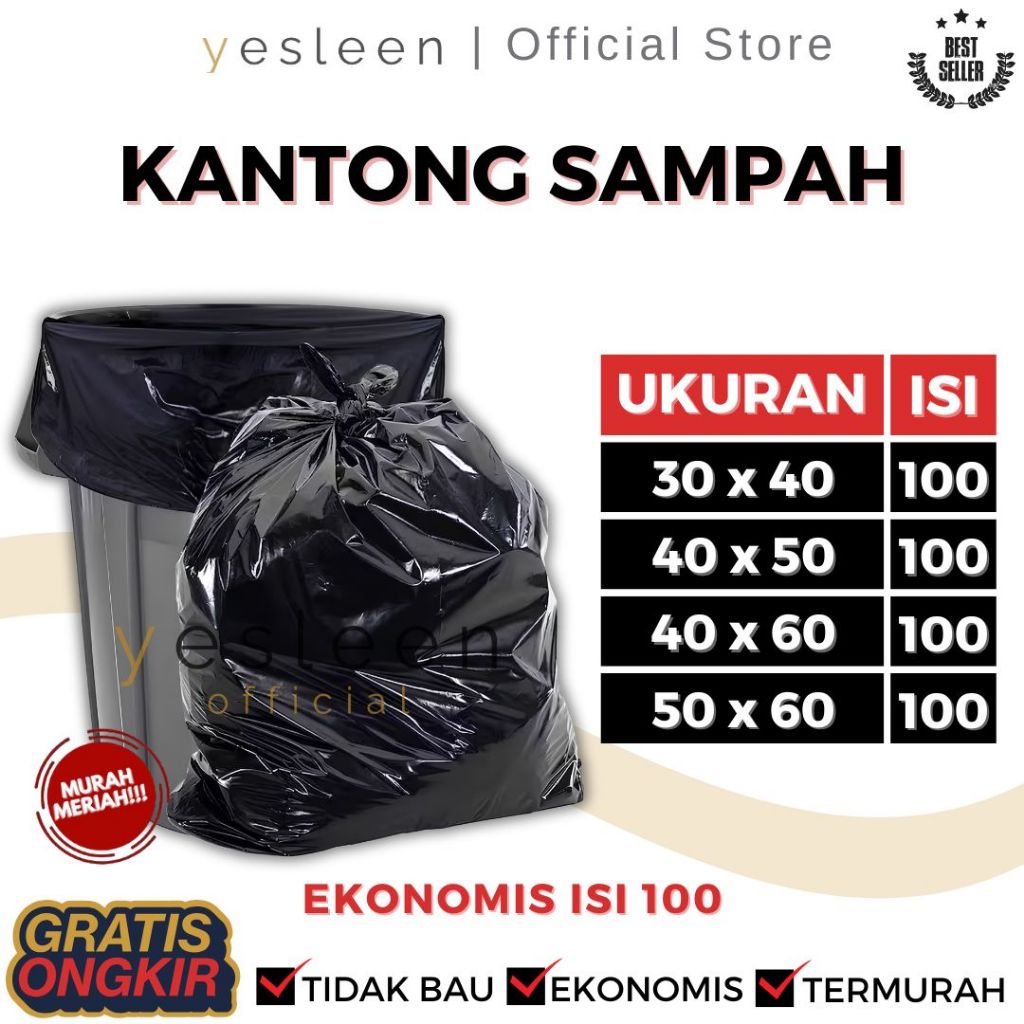 PLASTIK SAMPAH EKONOMIS ISI 100 PCS | Kantong Plastik Sampah Hitam | Plastik Packing Hitam Besar / 1 PACK isi 100 U
