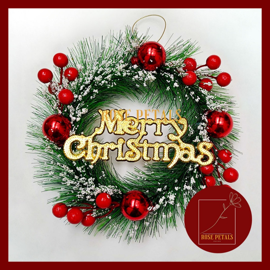 Snow Cheery Christmas Wreath Natal Dekorasi 20cm Karangan Bunga Pintu Natal Rangkaian Ring Merry Christmas Hiasan Xmas Wreath Natal Ornament Garland