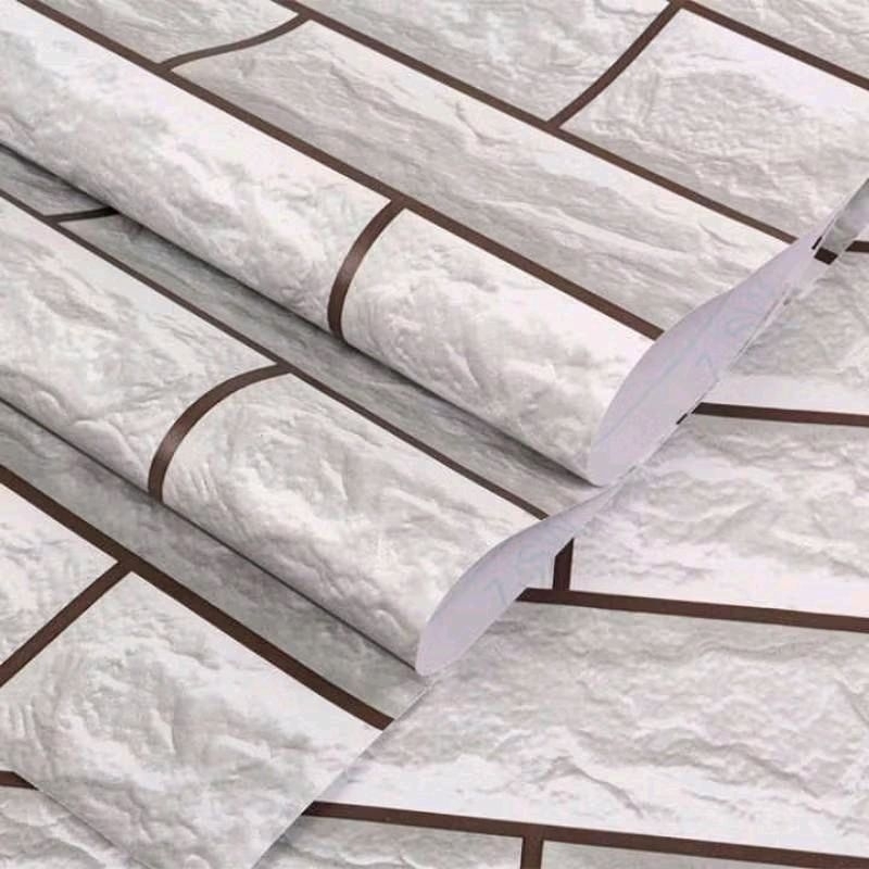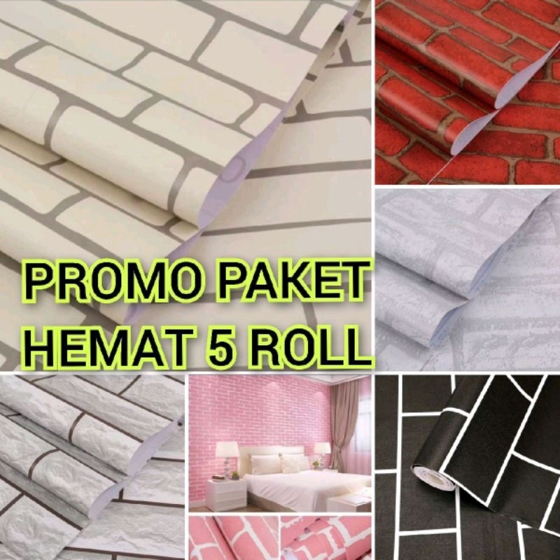 PROMO HARGA PAKET HEMAT 5 ROLL Wallpaper Dinding Sticker Dinding Batu Bata PINK BIRU PUTIH MERAH COKLAT HITAM Putih Krem