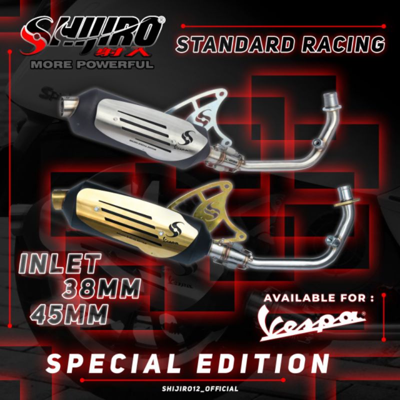 Knalpot Kenalpot Shijiro Standar Racing Spesial Edition Vespa Matic 125/150 Iget Primavera Sprint 2V dan 3V Original Shi