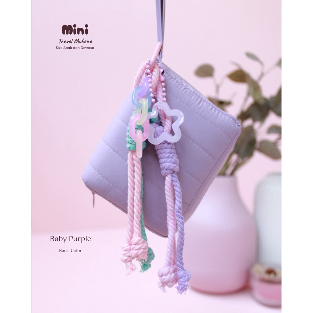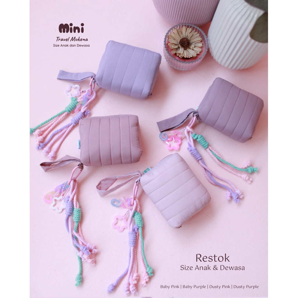 Mukena Traveling Mini Pouch Premium Basic Colour (2in1 Resleting Dagu) Anak dan Dewasa dengan Sajadah Muka Korea Soft Free Gantungan Tas Cantik