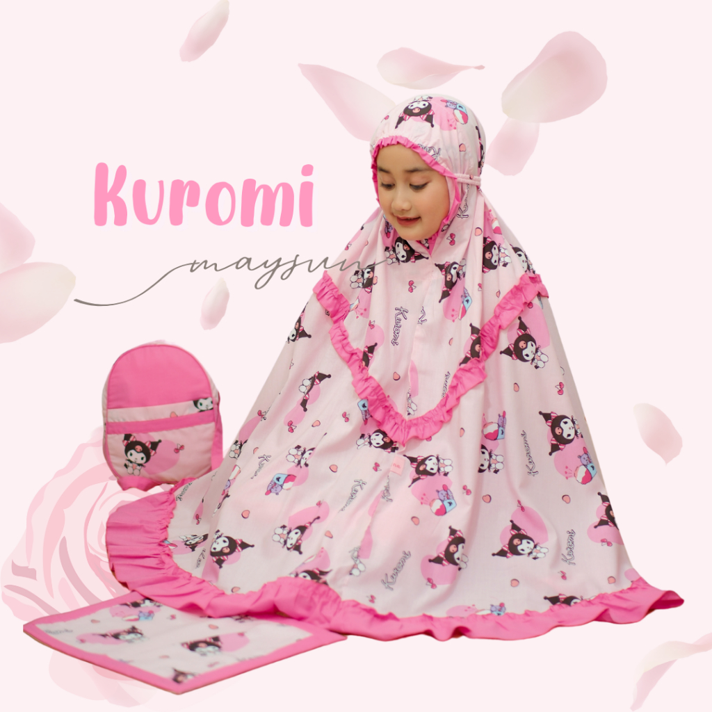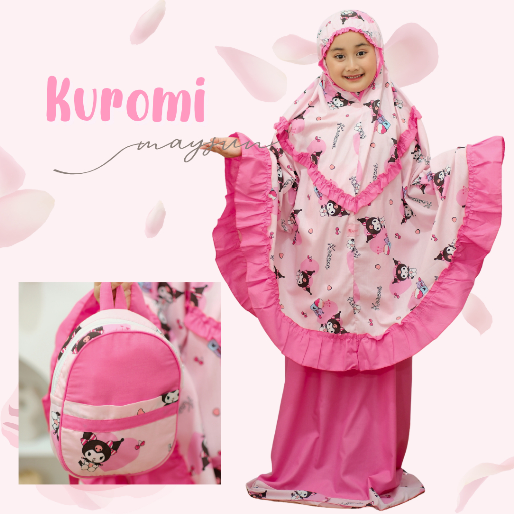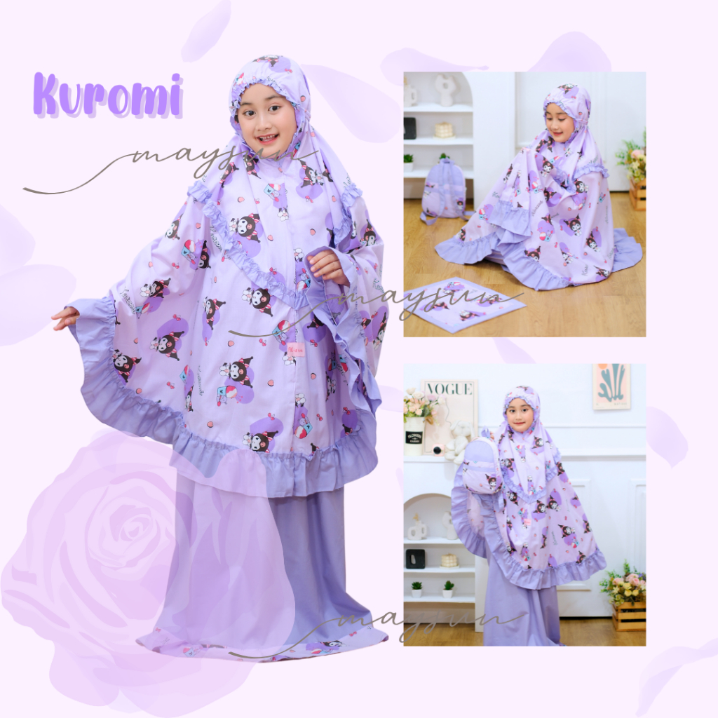 Mukena Anak Karakter 3in1 Kuromi Lilac/Pink Free Tas Ransel Dan Sajadah Muka