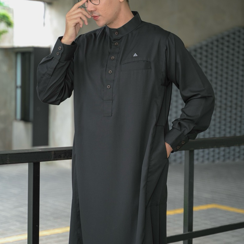 Jubah Pria Dewasa Premium AHSAN - Lengan Manset Black & White Edition