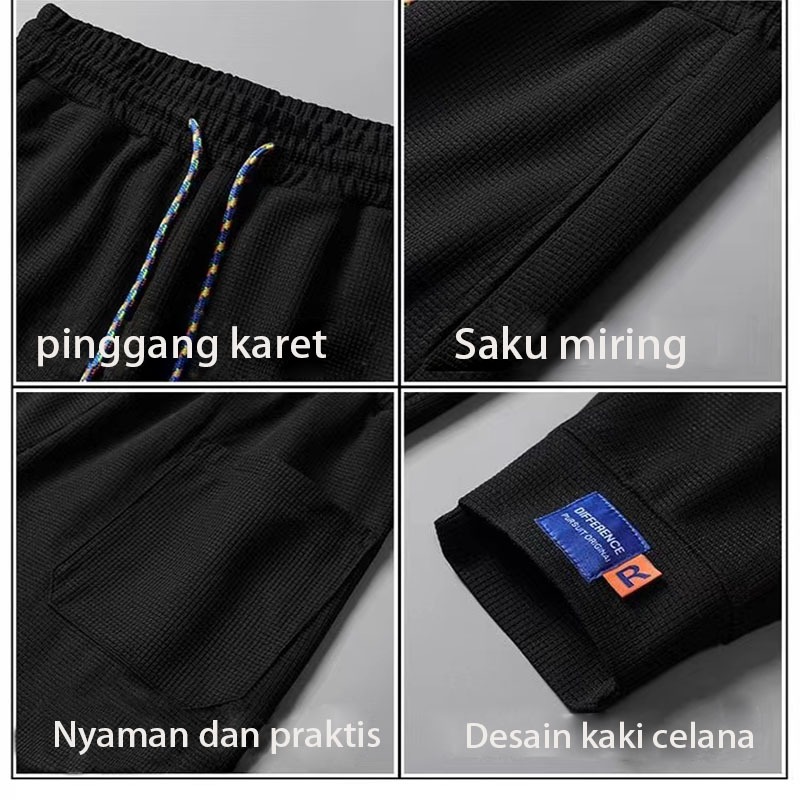 celana jogger pria Panjang korean style Kain Manset Elastis Cepat Kering Kain Wafel Celana Olahraga casual Nyaman