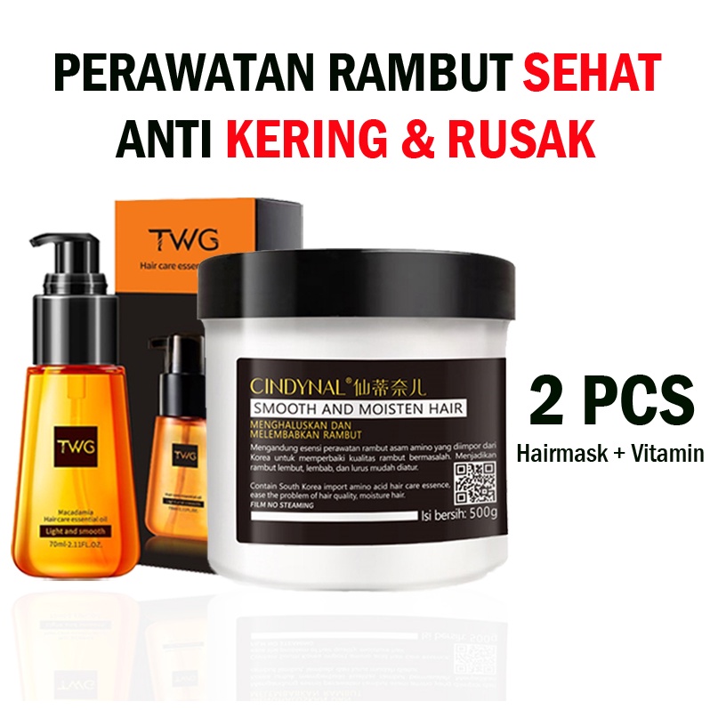 BM Perawatan Rambut Rusak 2in1 Cindynal Hair Mask Smoothing Korea 500g + Vitamin Rambut Kering Twg HairCare