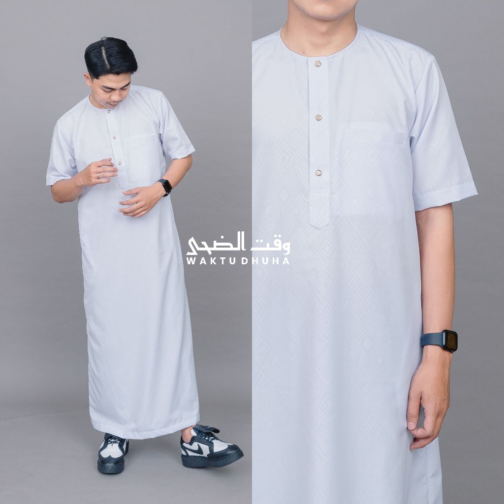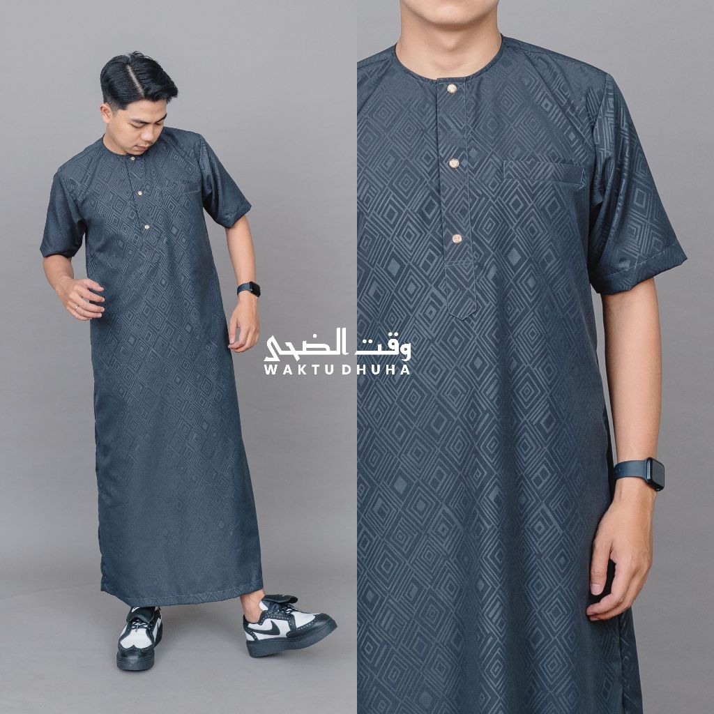 Gamis Jubah Lengan Pendek Pria Motif Embos Premium Jubah Azwar