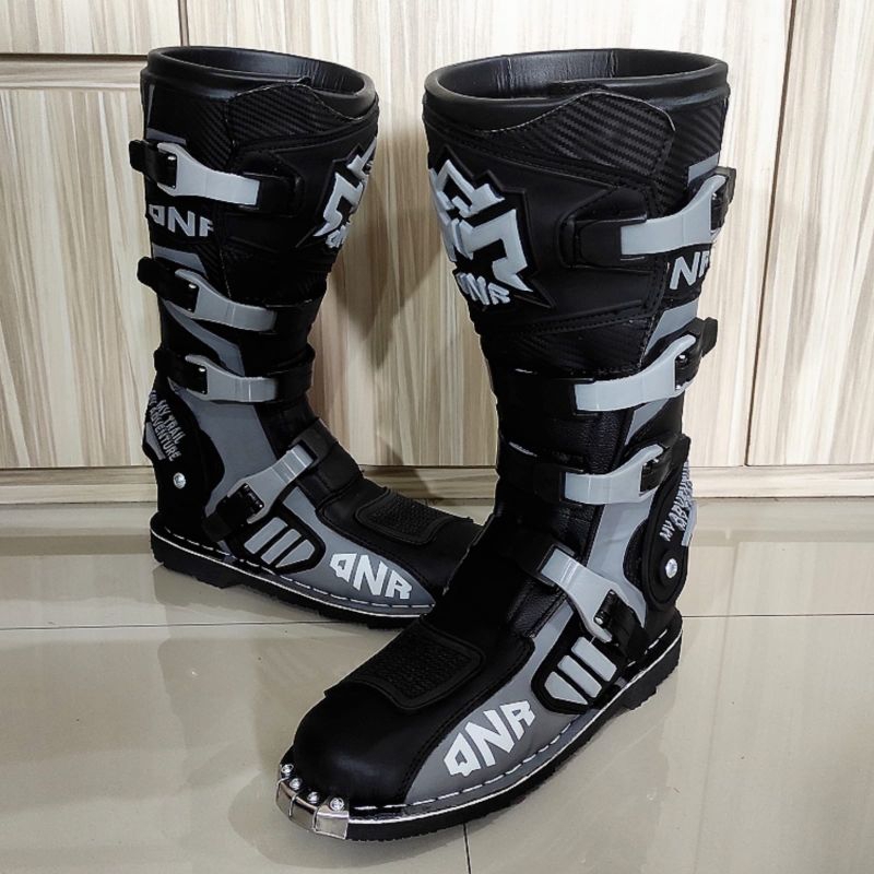 SEPATU CROSS TRAIL QNR ORIGINAL 2024 MX MOTORCROSS ADV TRABAS BOOTS SHOES BLACK SILVER