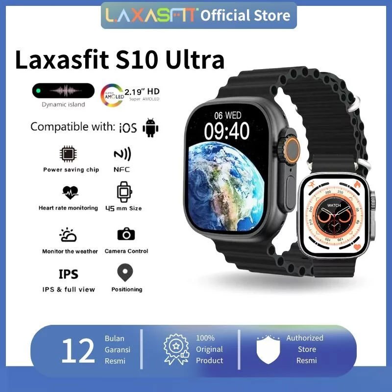 Laxasfit Watch S10 ULTRA Smartwatch Pria Wanita 2.19" AMOLED | IP68 Waterproof | Custom Wallpaper | Bluetooth Call | GPS