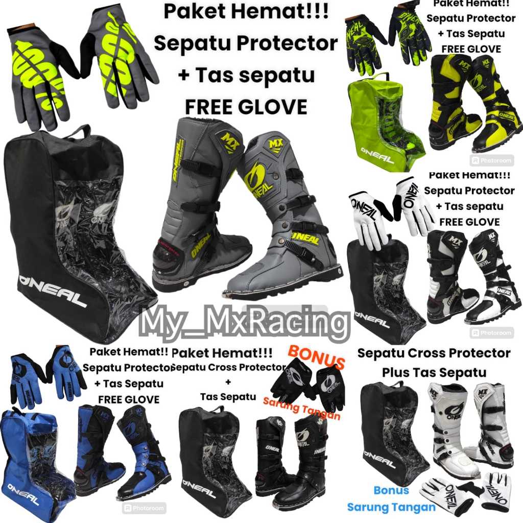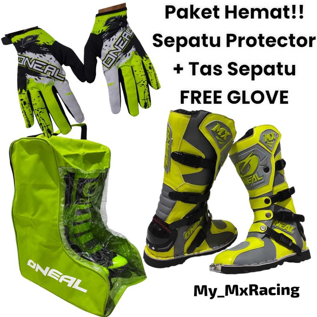 sepatu cross trail protector paket hemat sepatu trail adventure plus tas jingjing BONUS SARUNG TANGAN sepatu ON34L safety terlaris sepatu motorcross SIMPLE WHITE