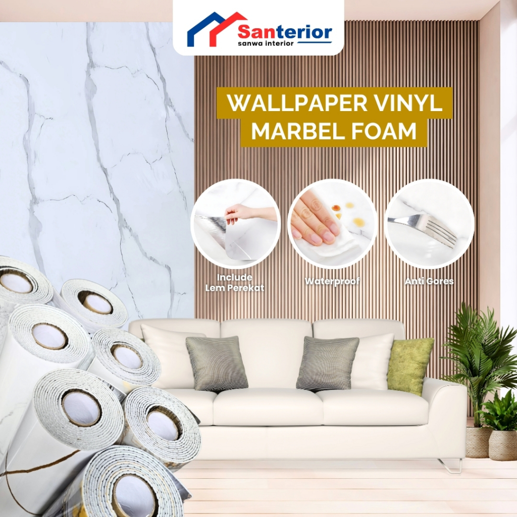 SANTERIOR✨TERLARIS✨TERMURAH✨Wallpaper Dinding Vinyl Marble Foam Roll Sticker Dekorasi 1.2 x 2.8 Meter Wallpaper Marmer W