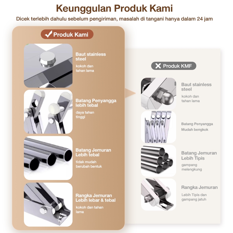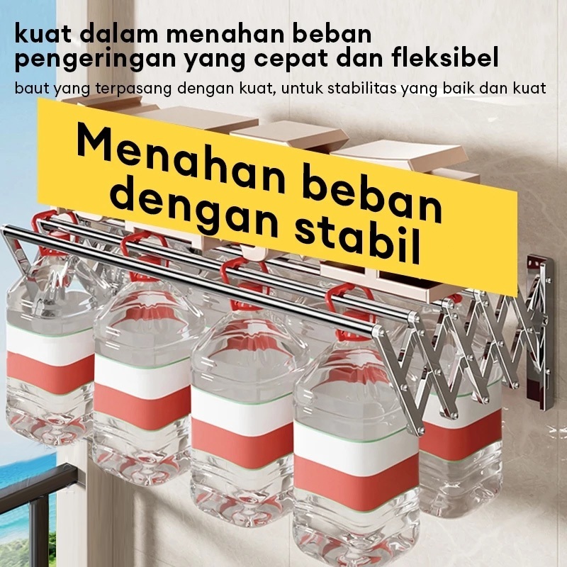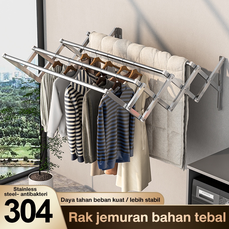 Jemuran Dinding Jemuran Baju Dinding Jemuran Baju Stainless Ditarik yang Jemuran Pakaian Lipat 200CM
