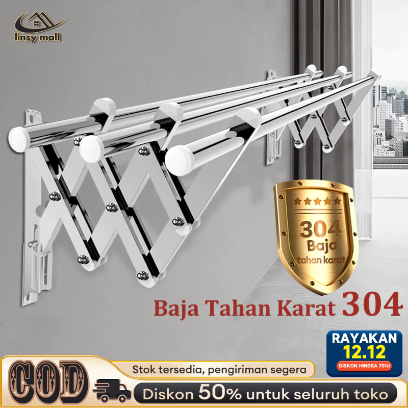 Jemuran Baju Dinding Stainless Steel Jemuran Dinding Lipat 200/180/150/120/100CM Anti Karat