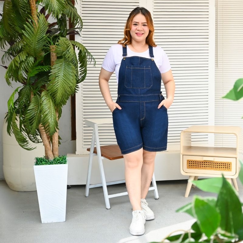 Jumpsuit Jeans Strech Wanita Jumbo/Celana Kodok Pendek Jeans Free Inner AY-117
